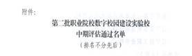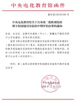 中央电化教育馆组织专家审核评估,中央电化教育馆公布了“全国第二批职业院校数字校园建设实验校项目”中期评估通过名单,我校名列其中。