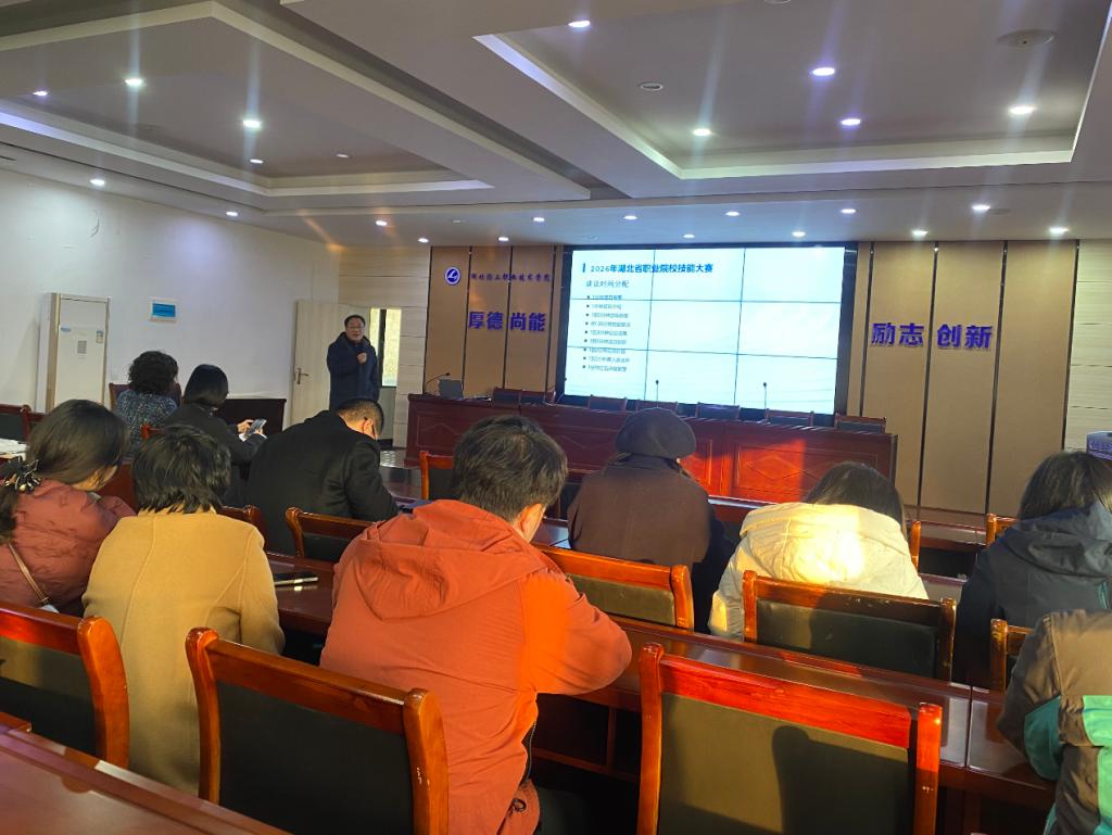 为深入贯彻“以赛促教、以赛促学、以赛促改、以赛促建”理念,扎实推进2026年湖北省职业院校技能大赛备赛工作,12月18日,教务处在校六楼会议室组织召开备赛部署暨经验交流分享会。学校党委副书记、校长夏光蔚出席会议并作动员讲话,部分二级学院负责人、相关赛道指导教师参加会议。