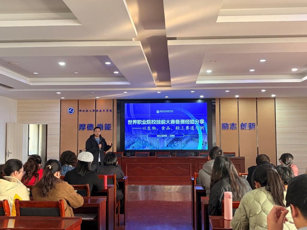 会上,轻化工程学院沈博玮老师以生物、食品、轻化等赛道为例,分享了世界技能大赛及省级竞赛的备赛经验。他从省赛最新规则、评分标准及赛制变化、选手选拔、训练计划制定、技术难点突破等方面系统介绍了有效训练机制,并结合实际案例,对备赛中常见问题提出解决方案,为现场指导教师提供了切实可行的参考。
