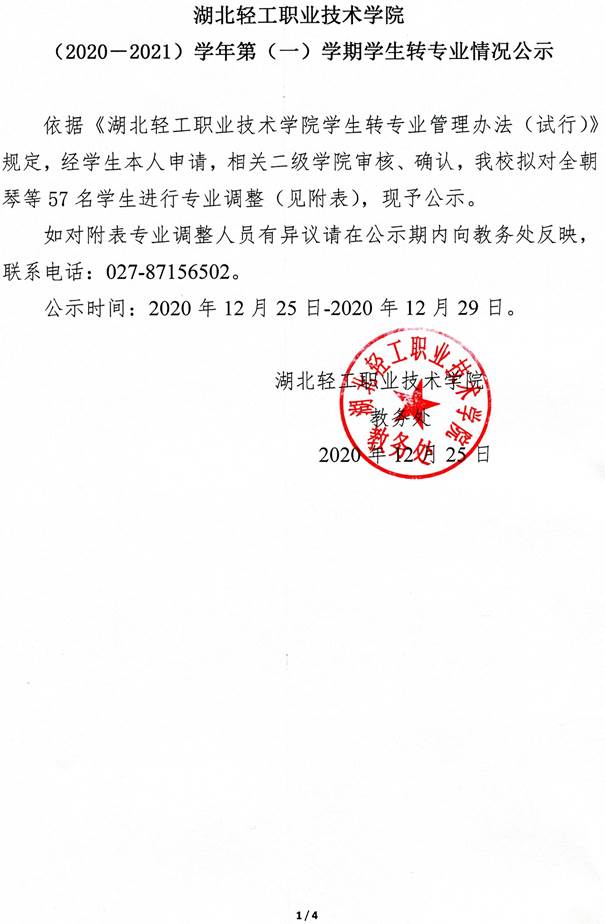 湖北轻工职业技术学院(2020-2021)学年第(一)学期学生转专业信息工程学院汇总